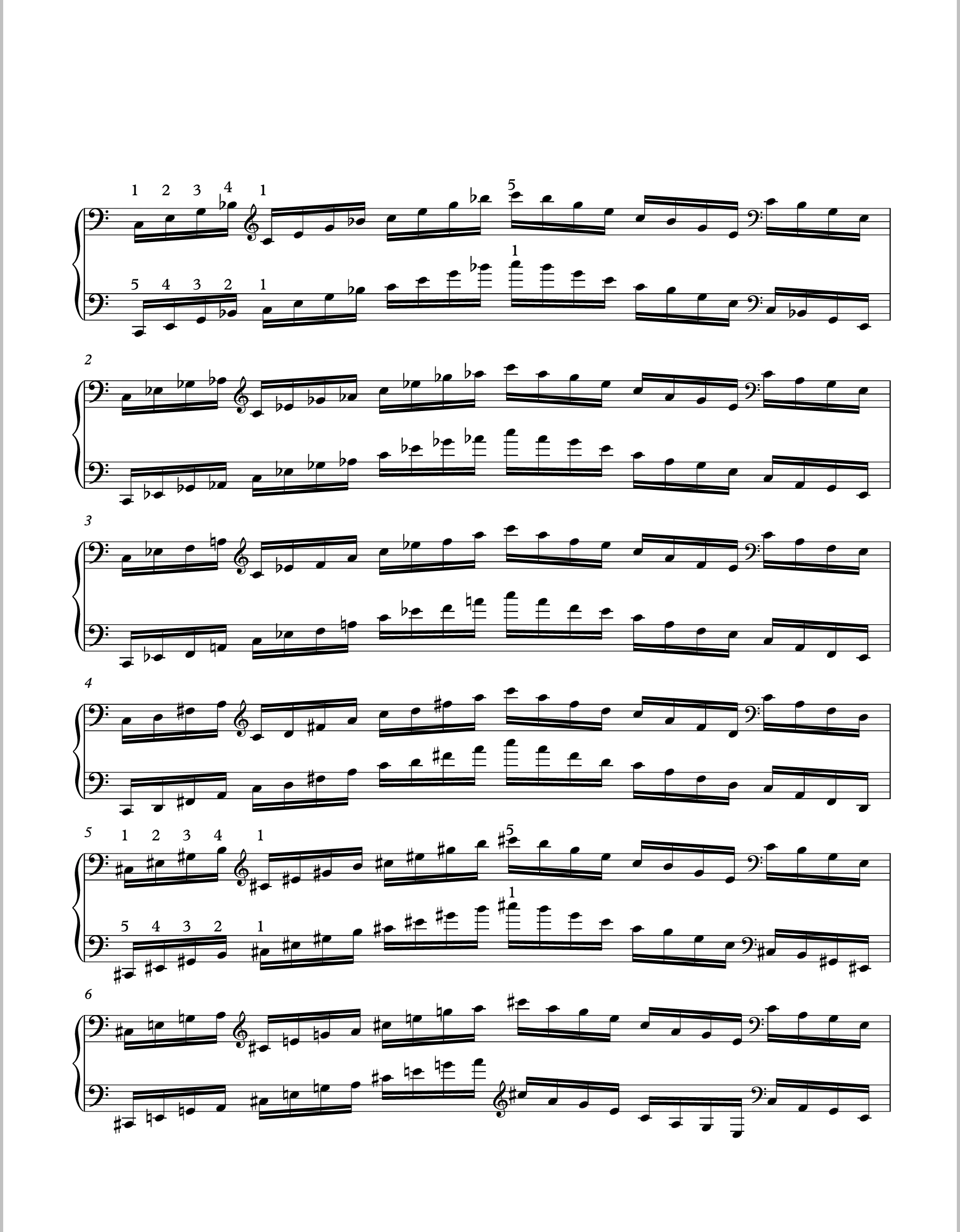 Dis sheeyat, my teacher gave me dat da mofos at Moscow conservatory practice to strengthen da finger tech. Apparently not published in any books (???)… Da trick is to ONLY use da same fingering as you progress up keys sigs, even when starting on da black keys, always 12341,54321, and I guess dis creates some really awkward stretches for da weak fingers. And play as fast as possible…