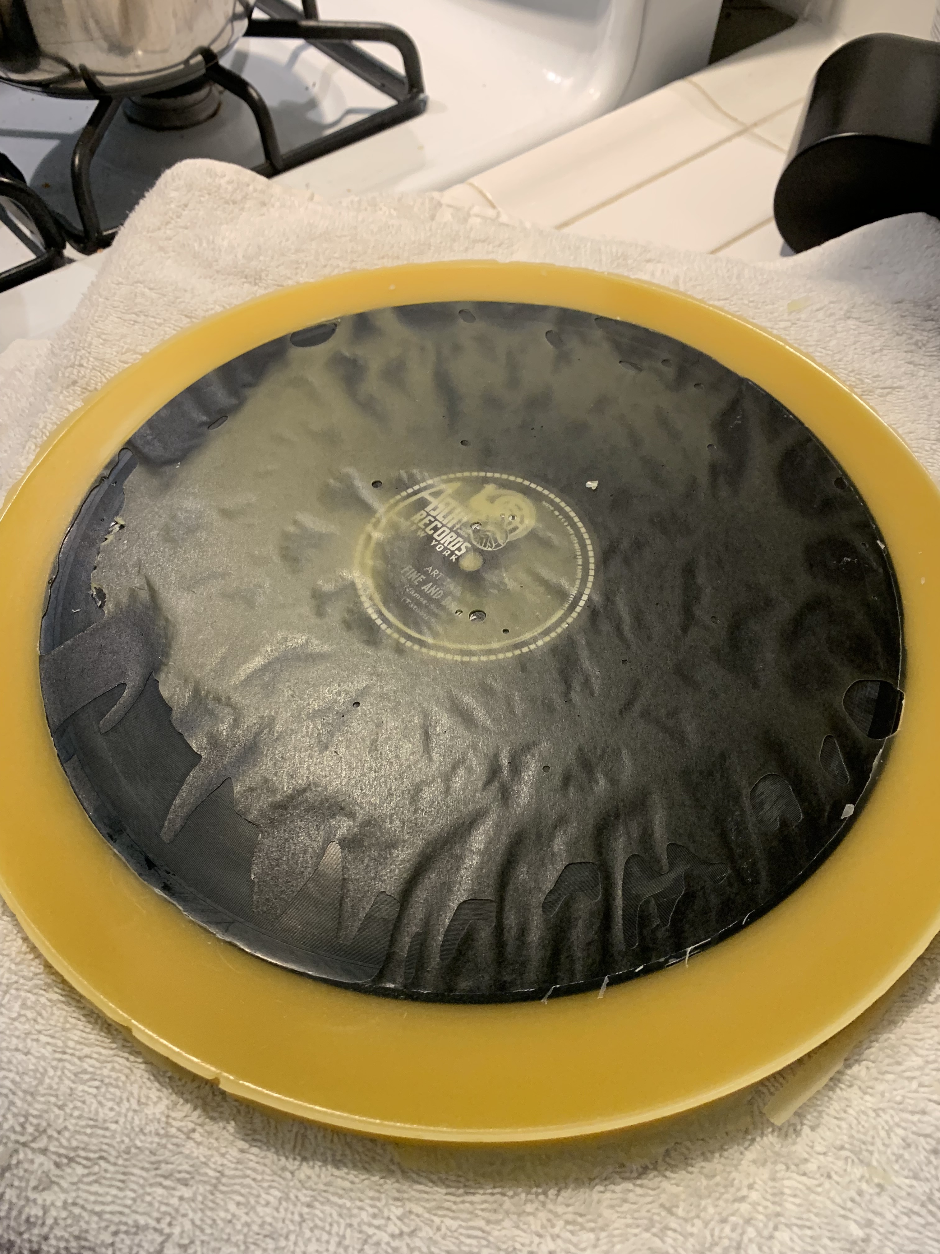 Cooked it in over to dry and flatten. This fucker still plays! This like John Wick of records. Will post transfer in a bit.