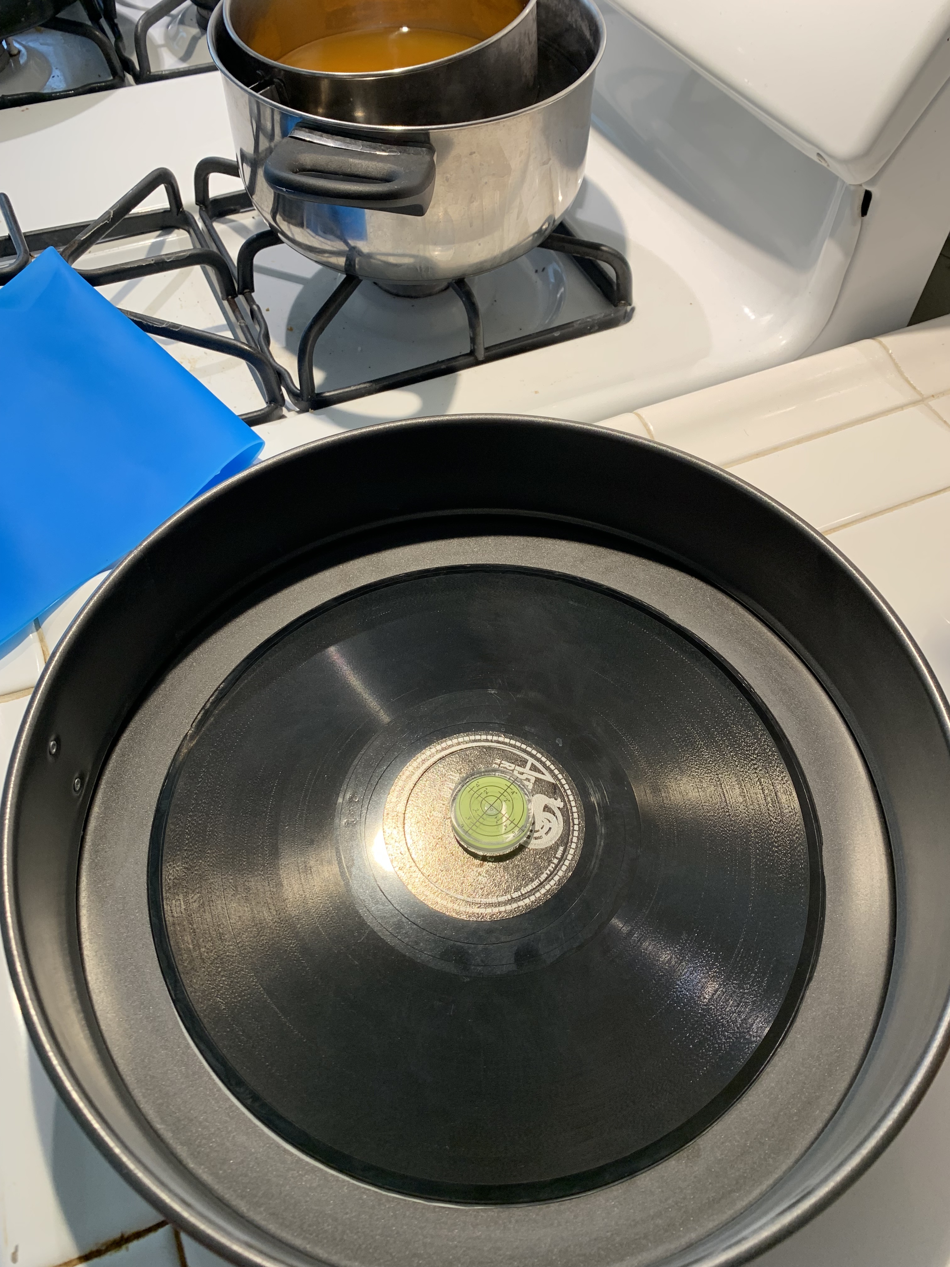 - Heat record and wax slowly cool